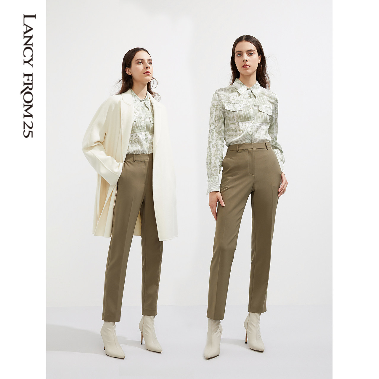 Lanzy suit suit professional pants children 2021 Winter new green high waist straight cylinder 90% Western dress pants