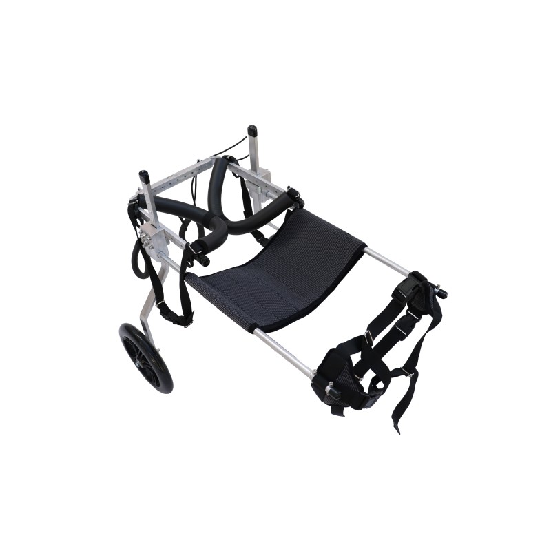 Paralyzed dog defecation assisted with hind limb and mental disorder in large dog wheelchair car with old pet bracket hind hip joints