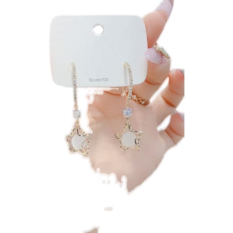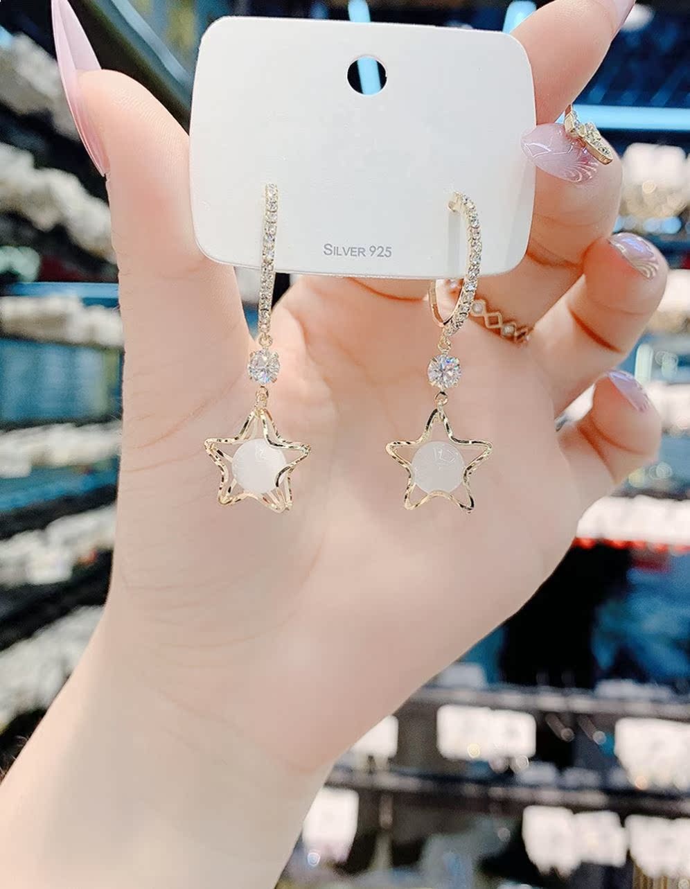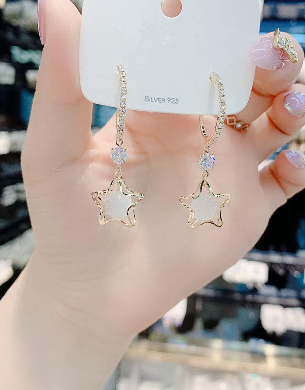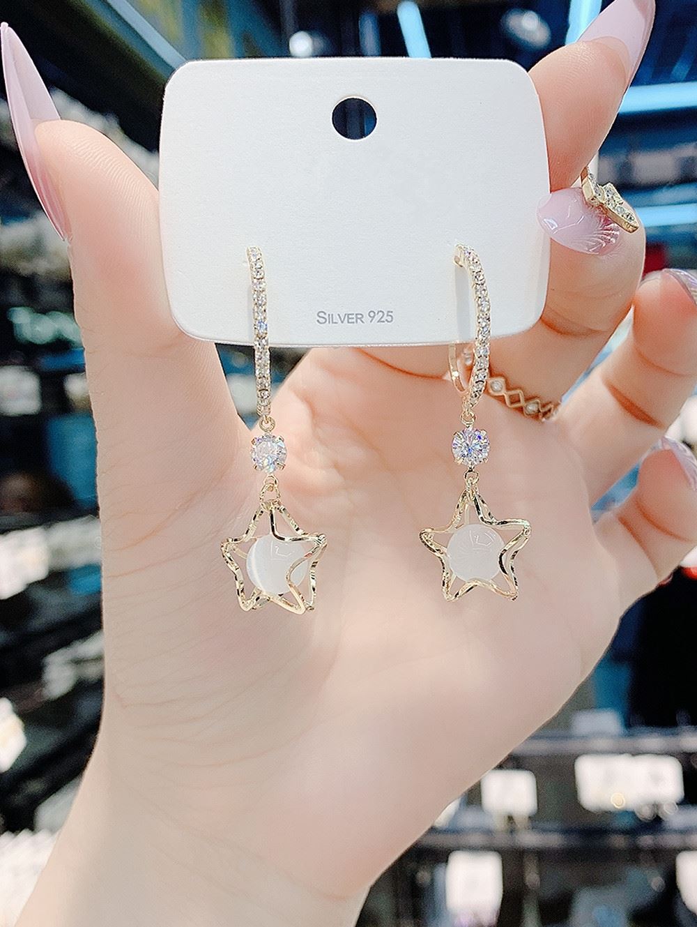 Star earrings female 2021 new trendy high-end opal earrings summer niche cold wind sterling silver earrings