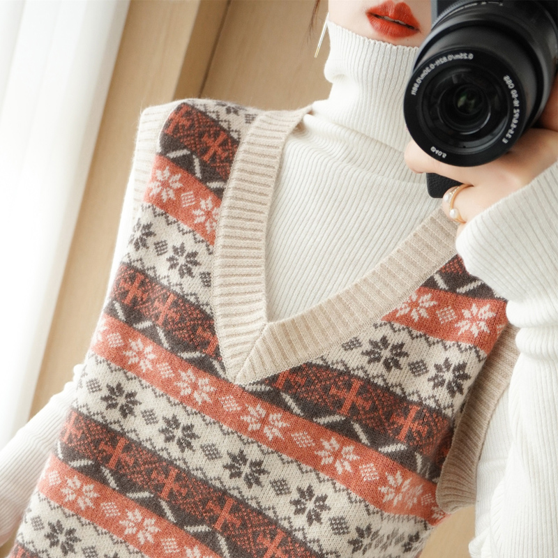 Autumn and winter new women's vest vest V-neck loose pullover outer wear vest lazy sleeveless vest knitted sweater