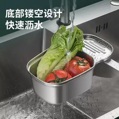Drainage basket kitchen sink washing basin basket basket 304 stainless steel pool kitchen waste saddle filter storage layer rack