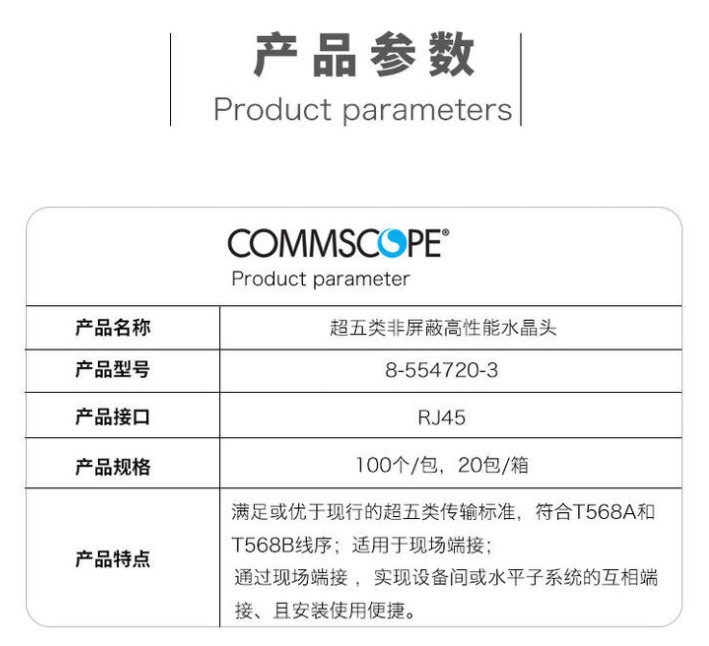 Conpuan Pump superfive non-shielded crystal head RJ45 mesh route plug joint 8-554720-3 to pass the test