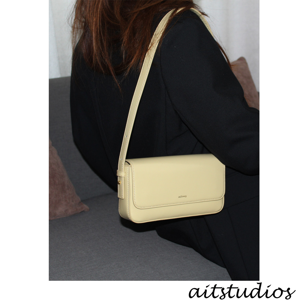 aitstudios baguette original design genuine leather faststick mahjong with dog armband single shoulder bag cream yellow