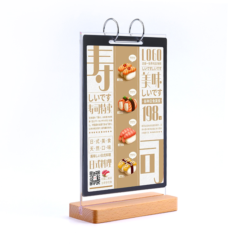 Wooden page-turning table cards A4 display cards Dining Hall Table Cards Milk Tea Shop Price Tag Double Sided Table Cards Display Table Card Racks a5 Standing Signs Water Card Table Meal Cards Loose-leaf Recipes Menu Cards Customised