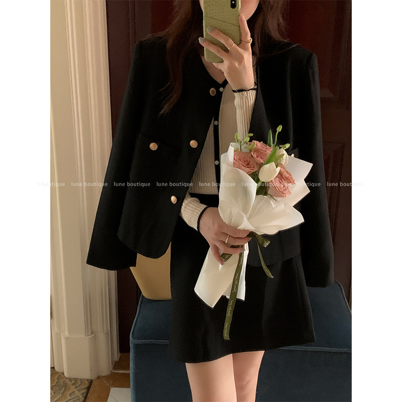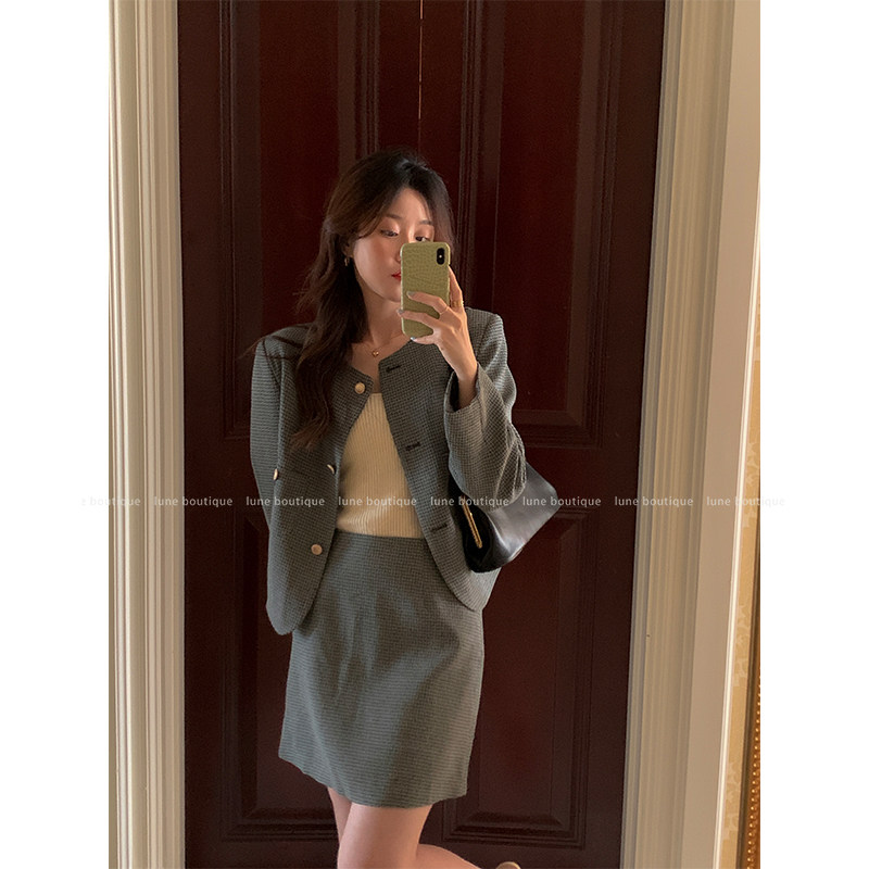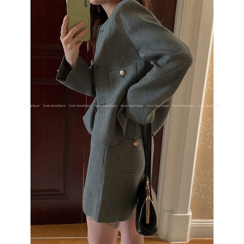 Lune Little Fragrant Wind Jacket Suit Woman Early Fall 2022 New Style Fashion 100 Hitch Half Body Dress Two Sets