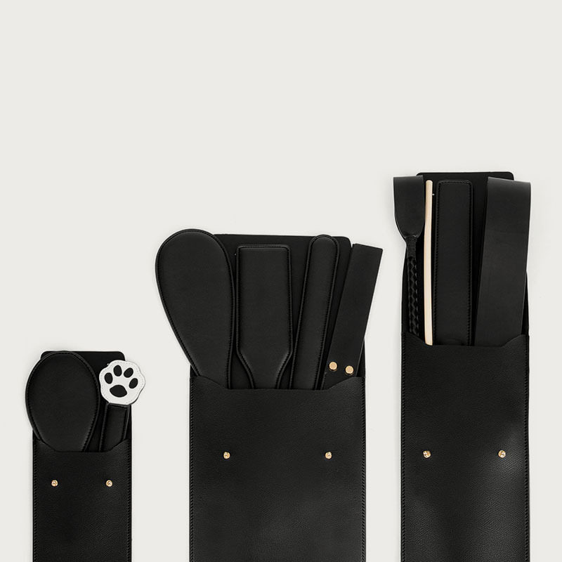 Rattan Horse Whip Wood Handle Pat Bull Leather Triple Pat pat Short Withdrawal Ruler Pat pat with big round slapping small round slapping square bat Cat Catch Pat Black Loose Whip Black Loose Whip Containing (medium) Contained Bag (short) Wine Red Ring