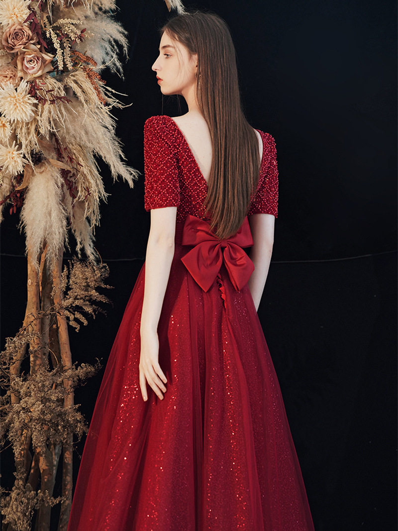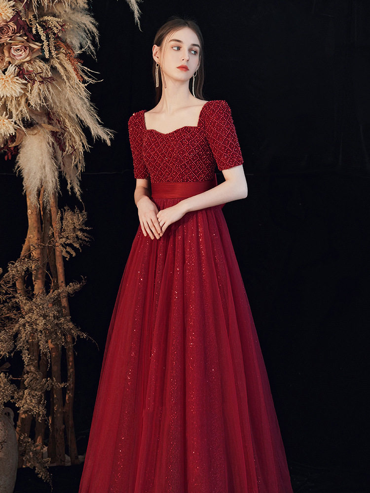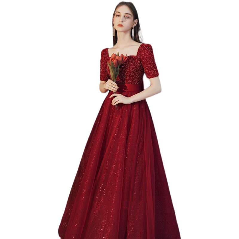Toast clothing 2021 new bride temperament evening dress skirt female banquet wine red can usually wear engagement skirt waist