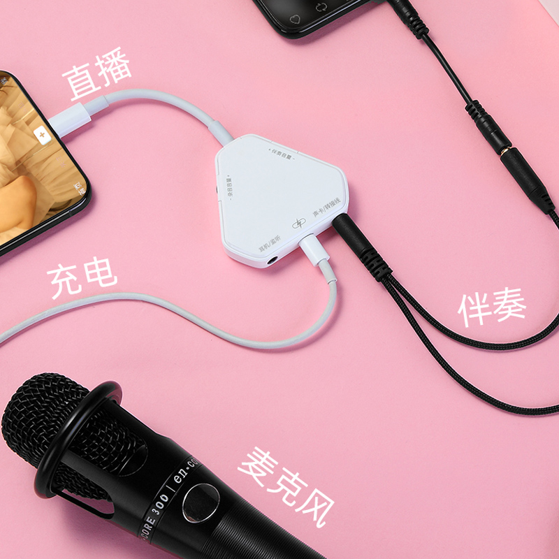 Apple lighting docking station mobile phone ipad sound card iPhone13 live converter transfer cable transfer headphone monitoring with charging port accompaniment music expansion 3 5mm interface connection