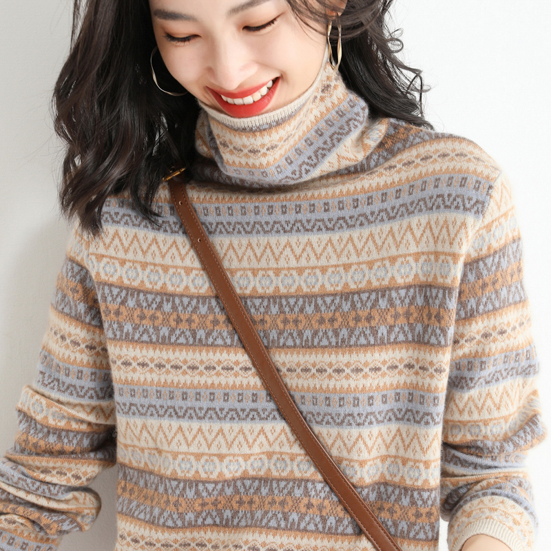 New Autumn Winter Thickening Needle Weaselwear Pile High Collar Sweater Women's Sleeve Head Inner Hitch Long Sleeve Bottom Repo Streaks Blouse Blouse