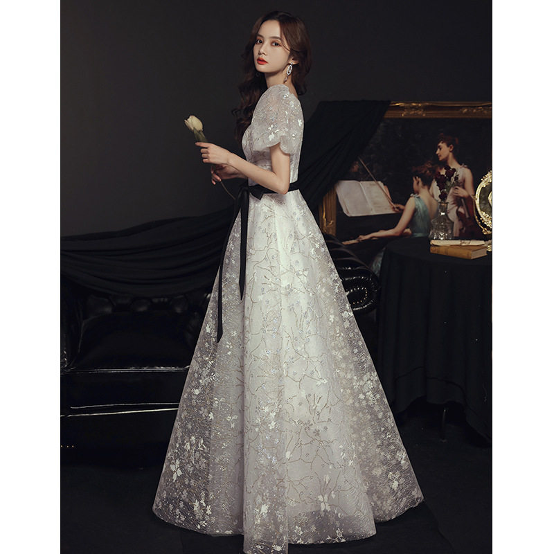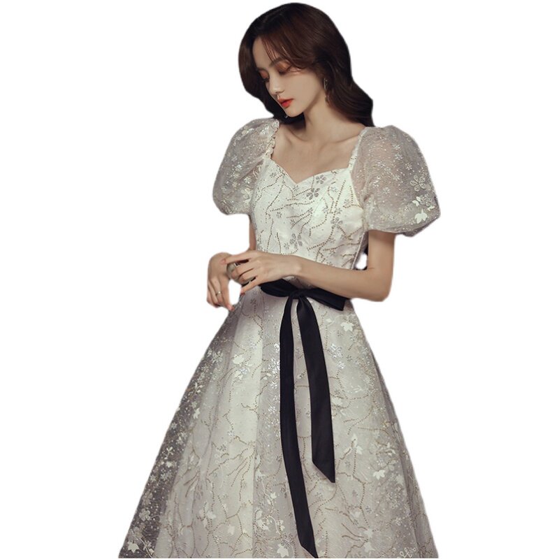 Banquet evening dress 2021 new white French temperament fairy long version dress tutu skirt annual meeting evening dress