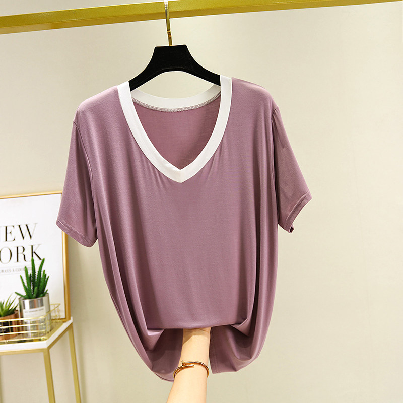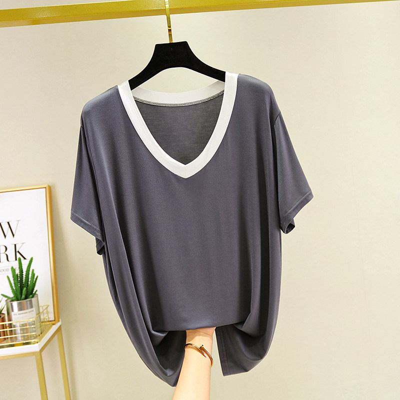 Women's pajamas short-sleeved summer thin section modal casual t-shirt home half-sleeved pure cotton summer loose top home service
