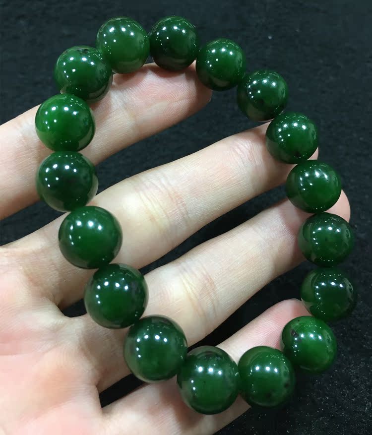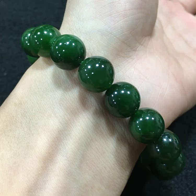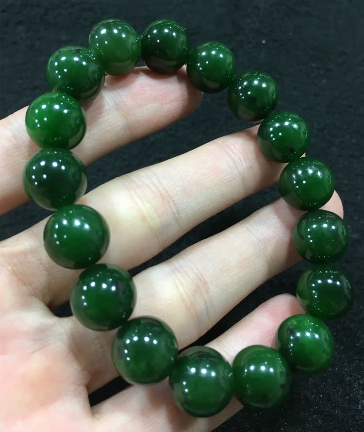 Natural Hetian Jade Jasper Black spot hand hand string Russian Jasper spinach green 12mm Jasper hand string