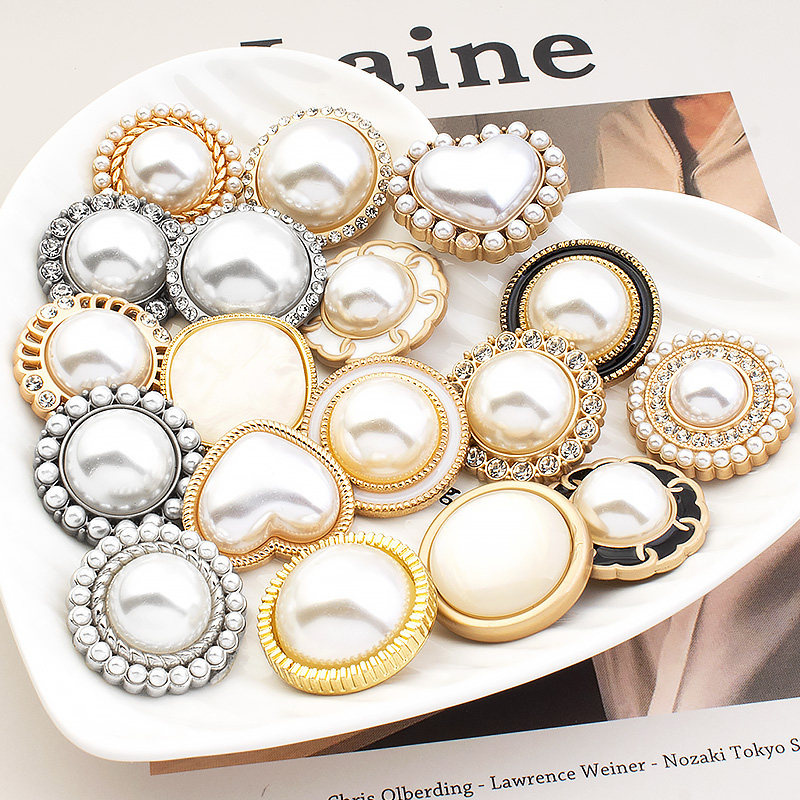 Pearl Button Small Fragrance Coat Windbreaker Sweater Cardigan Metal High-end Luxury Round Decorative Clothes Big Buttons