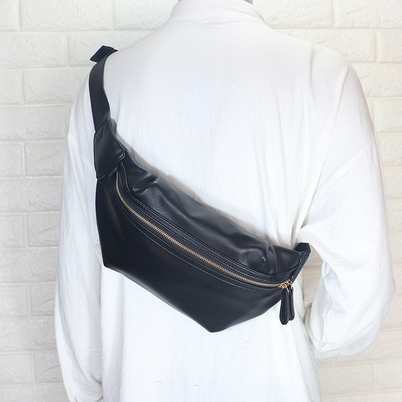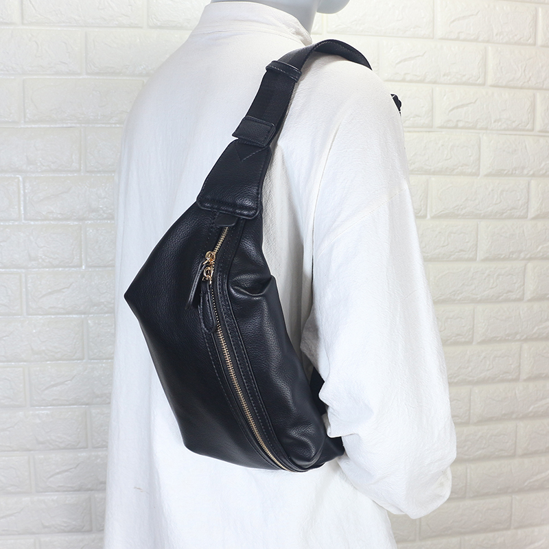 Chest Bag Men's Han Version Tide Fashion Brief Youth Men's Satchel Soft Leather Casual Sports Men's Purse Chest Front Bag Locomotive Bag