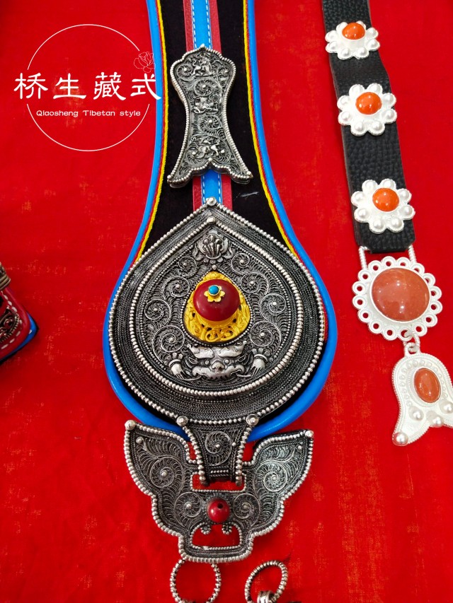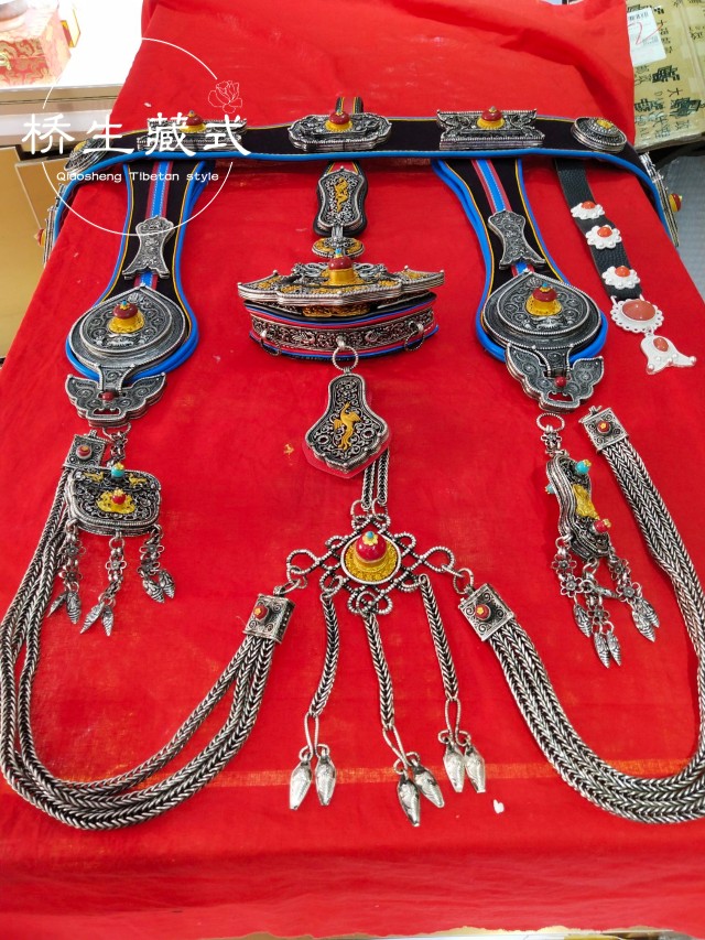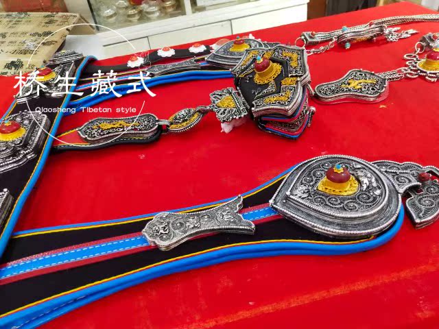 Tibetan dancing wedding Tibetan pendant belt belt chain wallet jewelry set cupronickel silver-plated material does not fade