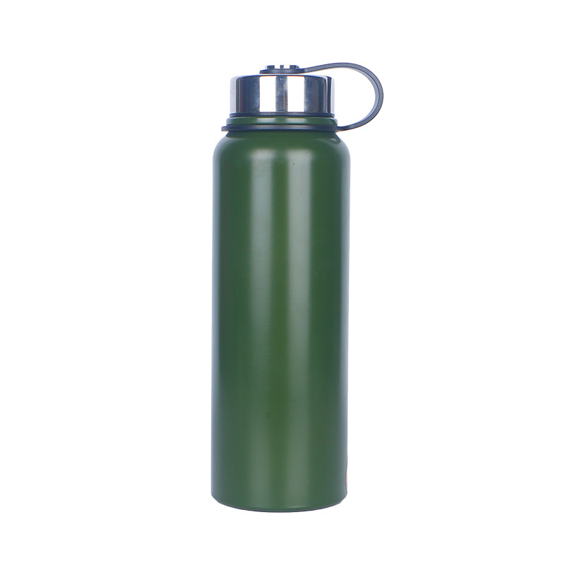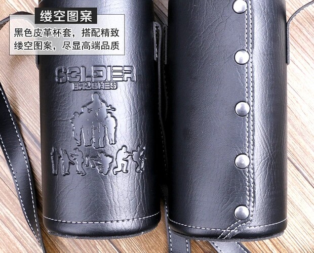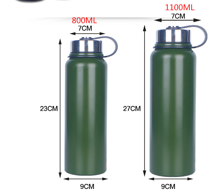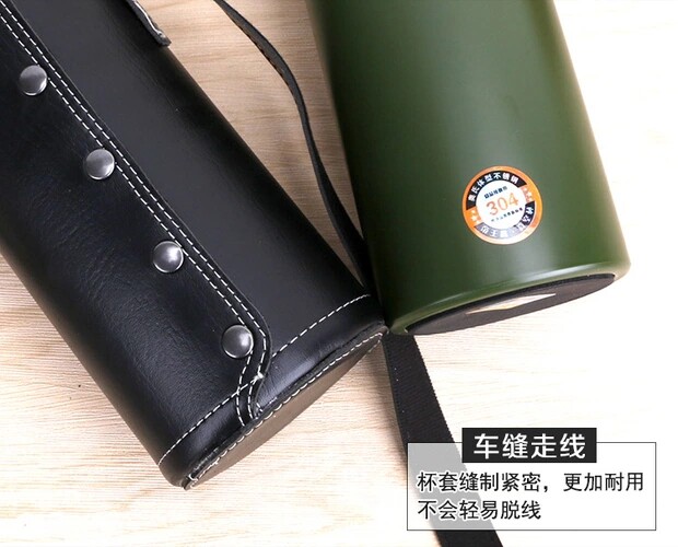 Large capacity green double layer vacuum stainless steel outdoor travel wild portable sports insulated kettle 1100ML with leather sleeve-Taobao