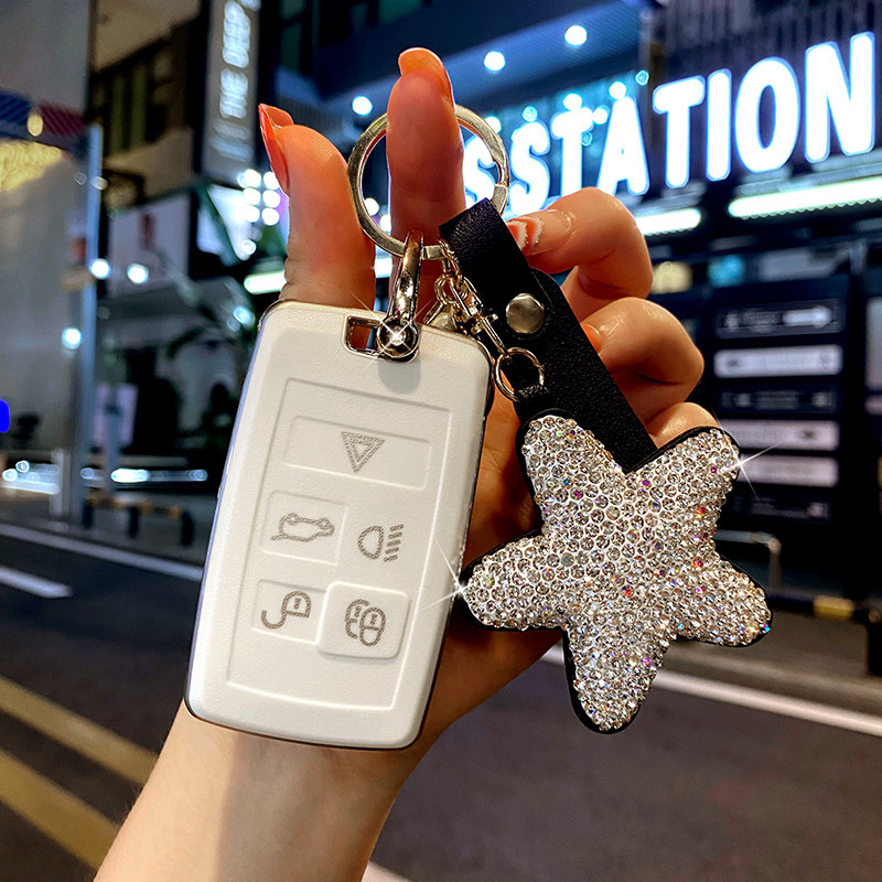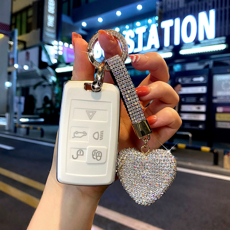 Land Rover Model A-White Key Cover Silver Lanyard Land Rover Model A-White Key Cover White Diamond Love Land Rover Model A-White Key Cover Flash Diamond Pendant Land Rover Model A-White Key Cover Cat