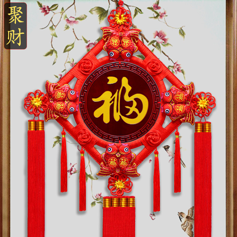 Peach China knot hang pieces living room large high-end Fuji decoration of the Xuanqiao Moving Spring Festival New Chinese entry door