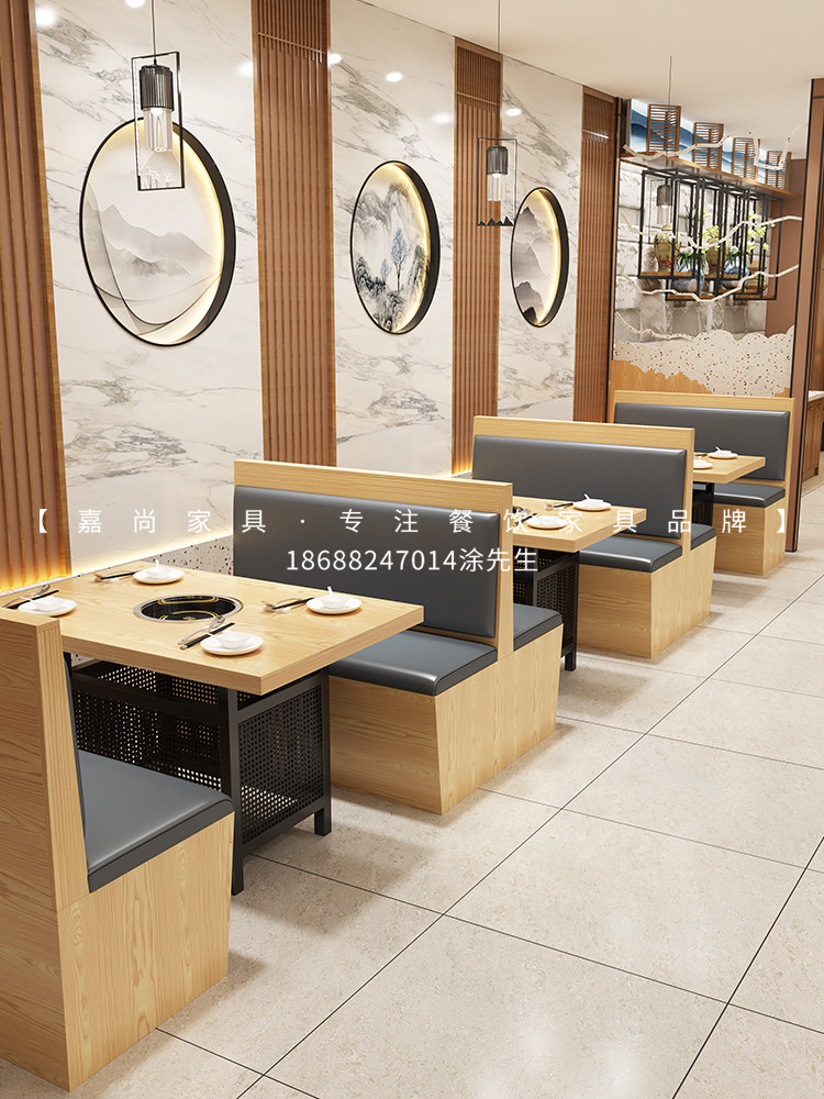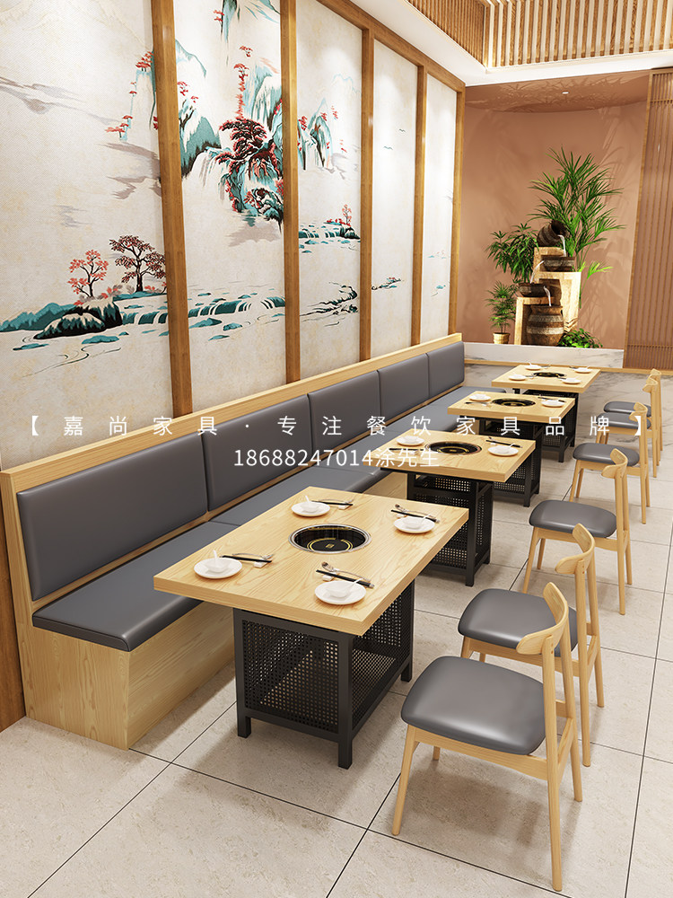 Themed dining string hot pot shop tables and chairs Barbecks shop solid wooden cartridge sofa network red hotel chain restaurant combination