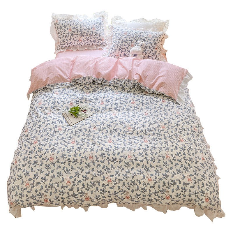 Korean version of bed sheets, quilt cover, four-piece set of cotton girl ins wind princess bedding four-piece set of cotton bed bag