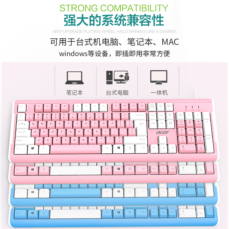 Powdery White Wire Keyboard Pink White Wire Keyboard White Blue Wire Keyboard Blue White Wire Keyboard White Grey Wired Keyboard White Color Wire Keyboard Luminous version pink white wired keyboard Luminous