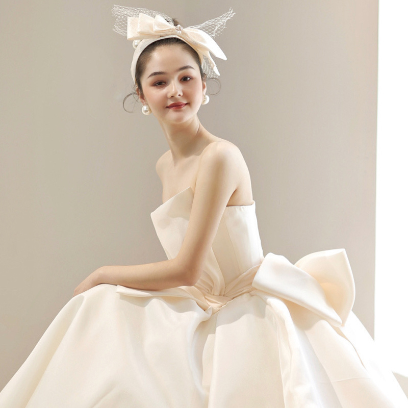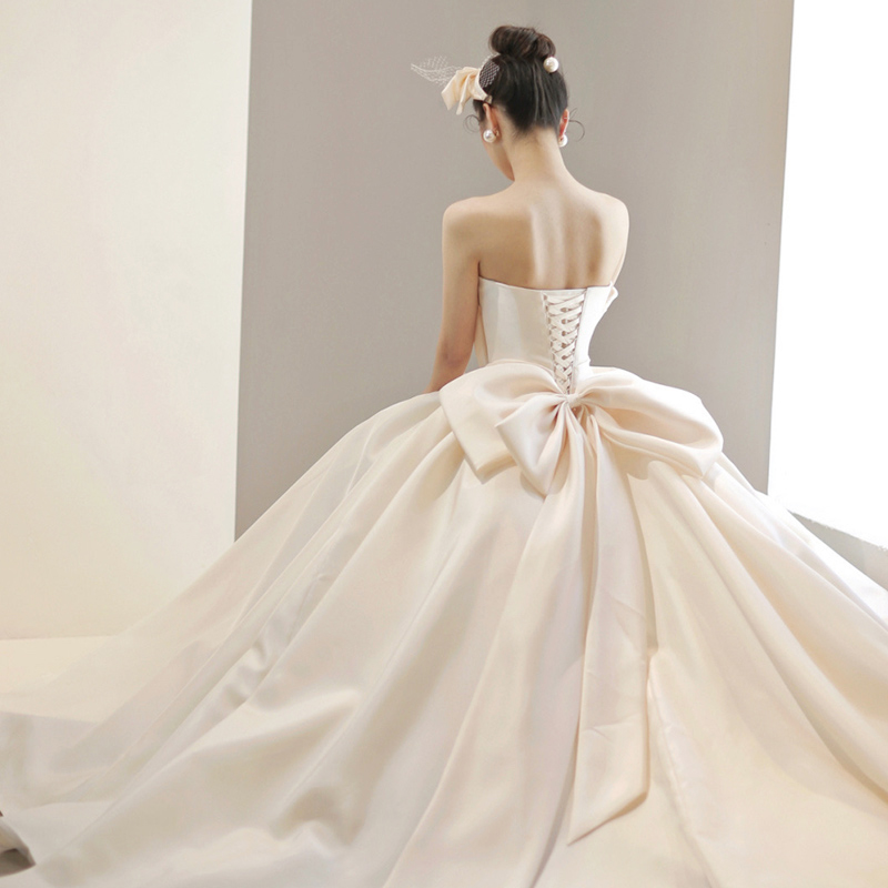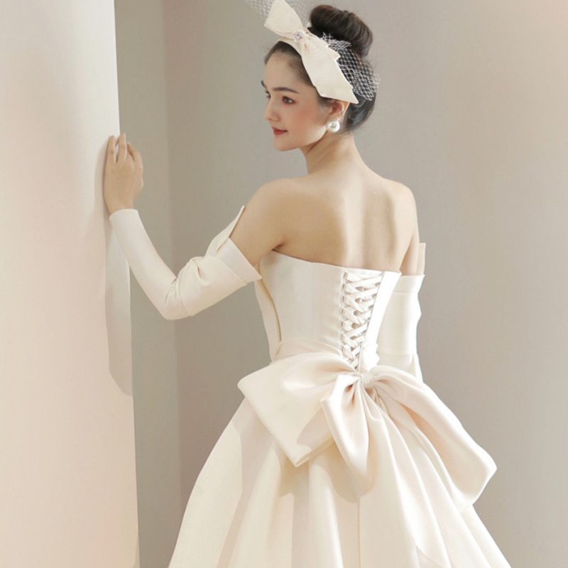Satin French vintage wedding dress 2023 new bride master yarn little long sleeve high - sleeve texture drag tail