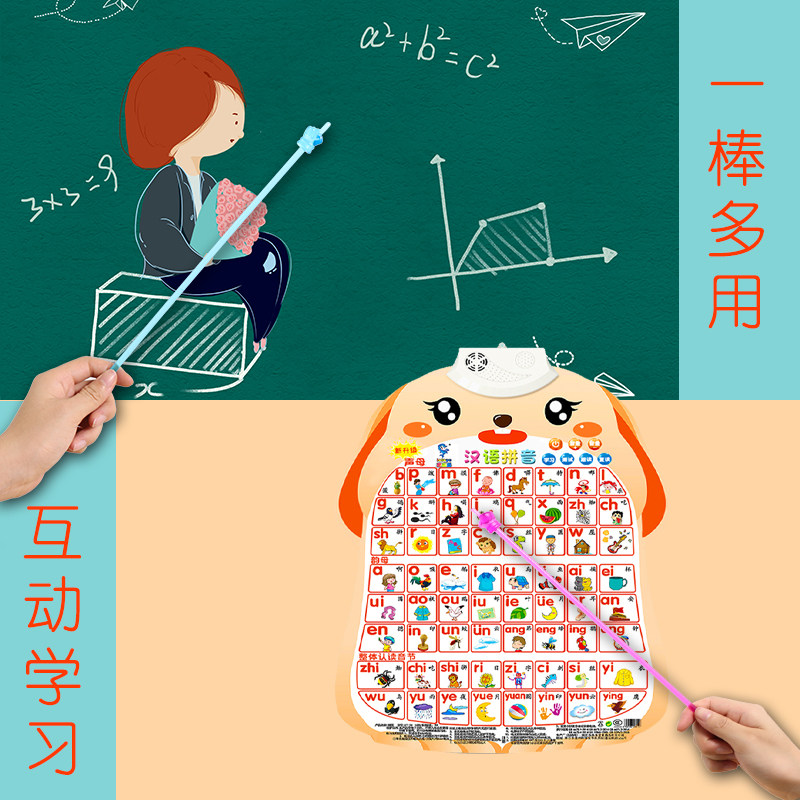 Teacher child refers to reading stick teaching instructions Rod Kindergarten Elementary School Students Teachers Teaching Bar Early Lesson Reading Plodding Fingers Shape Mini can Love Teach Whip Point Reading Pen 3-8 years old