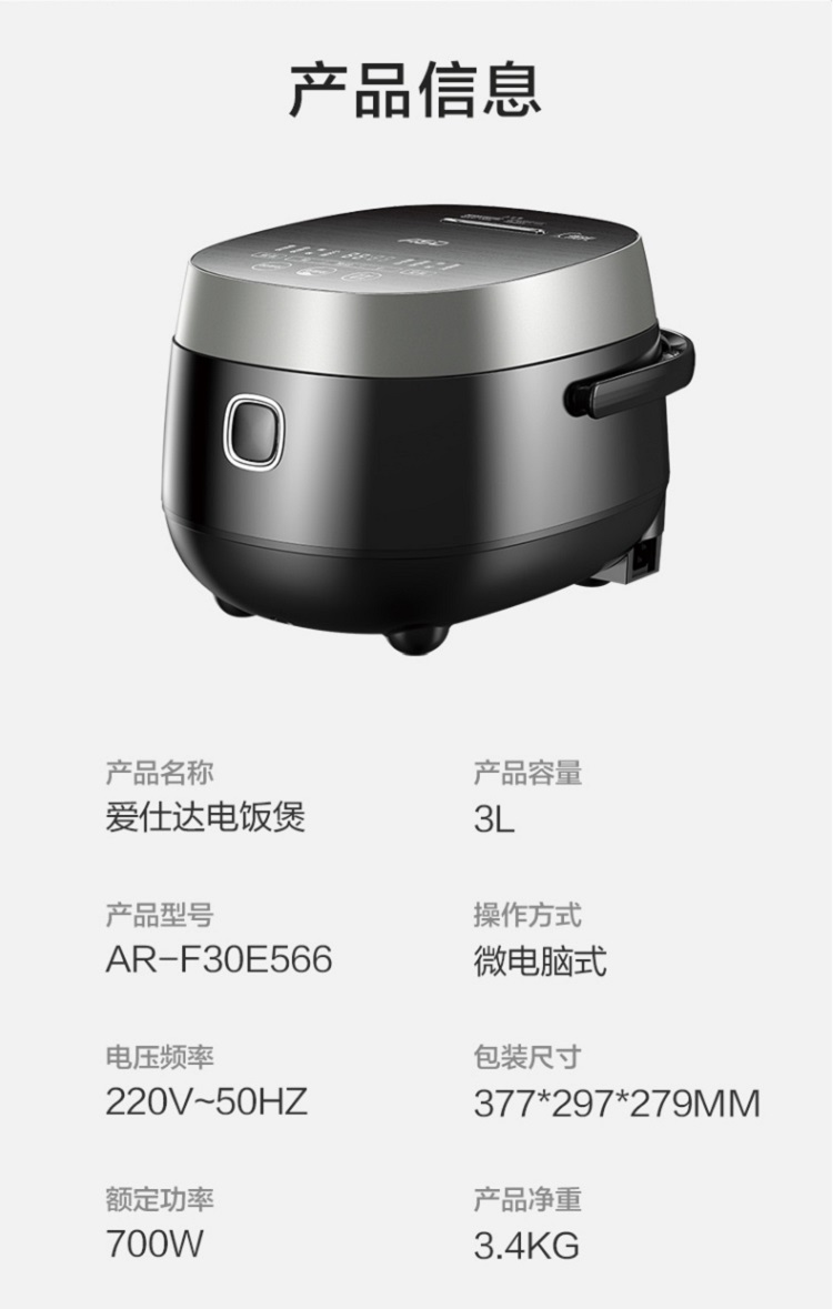 ASD AR-F30E566 low-sugar rice cooker 3L multi-functional rice cooker rice soup separation