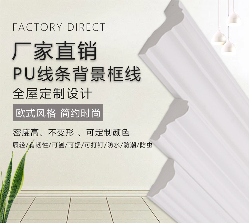 PU line plain flat line ceiling decorative line background wall shape border imitation gypsum line waterproof