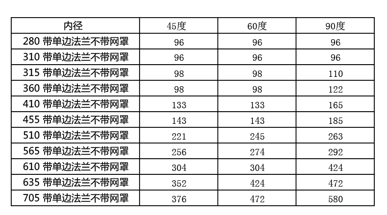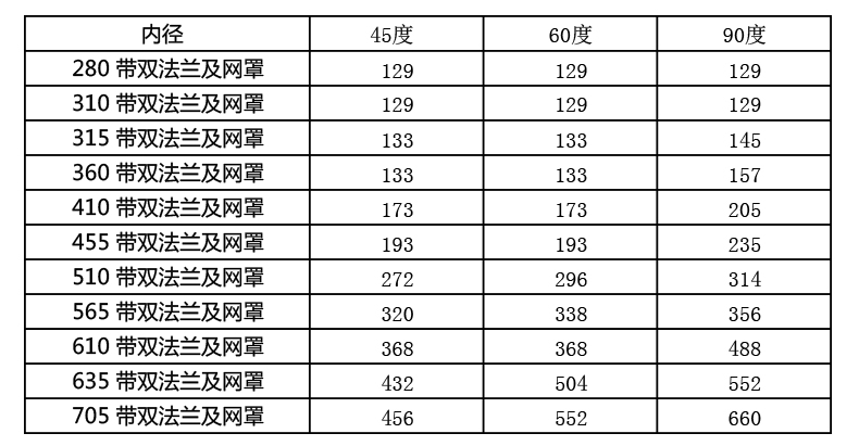 45 degree inner diameter 280 with double flange and mesh hood 45 degree inner diameter 310 with double flange and mesh hood 45 degree inner diameter 315 with double flange and mesh hood 45 degree inner diameter 360 with double flange