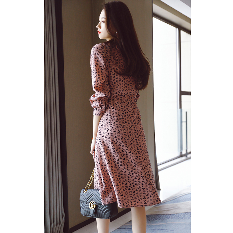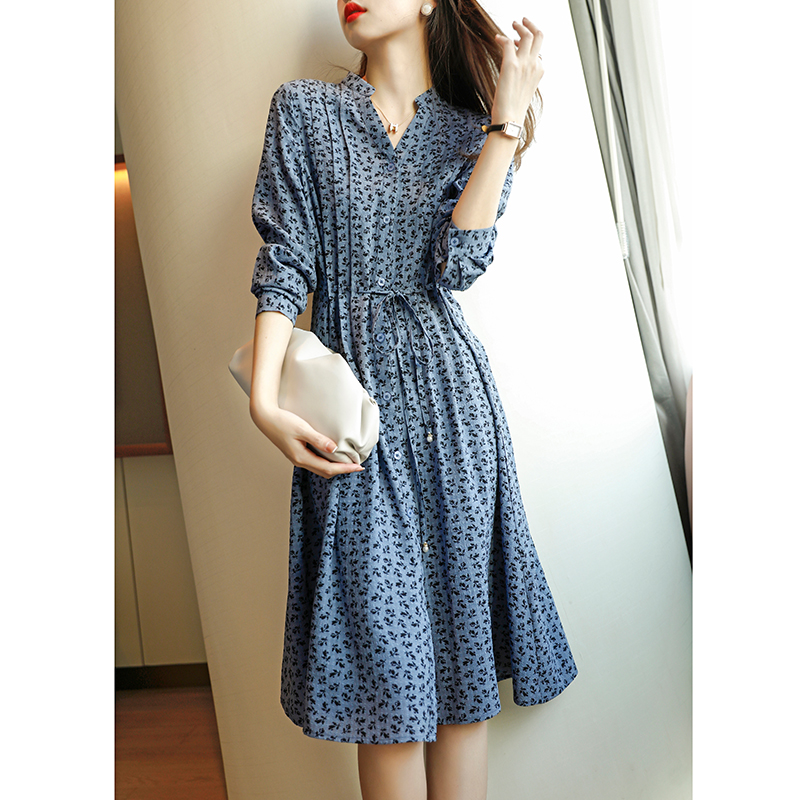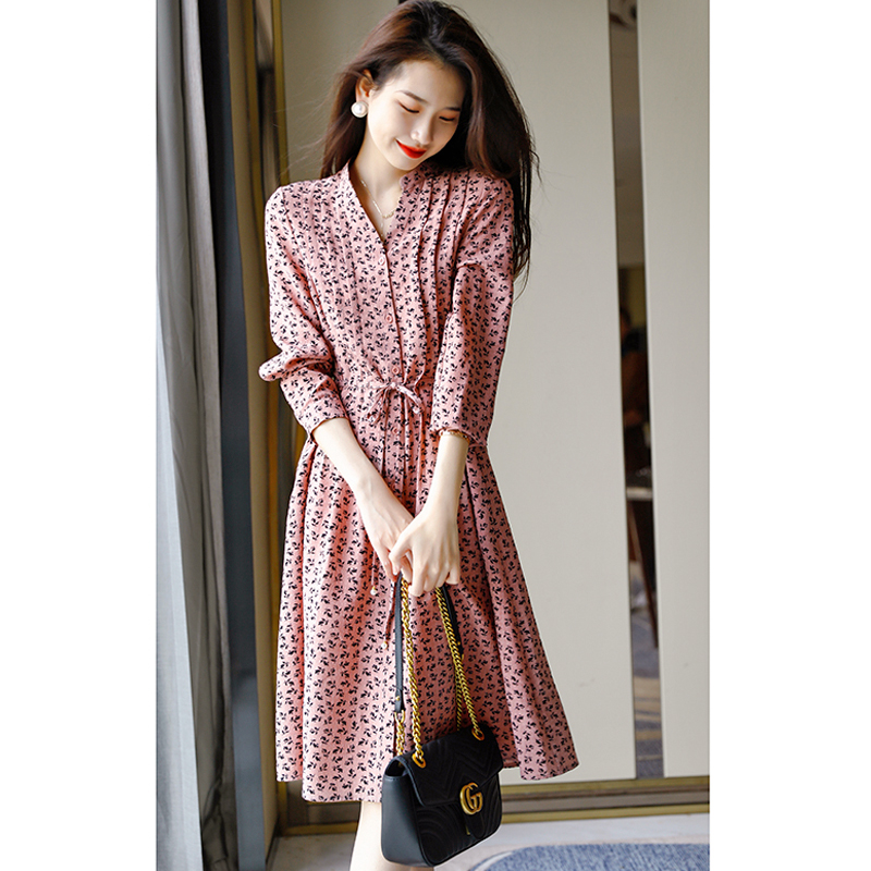 Gentle Wind high-end Crushed Flowers Foreign Dress Women 2022 Spring New Temperament Close-up Lace V collar A long skirt