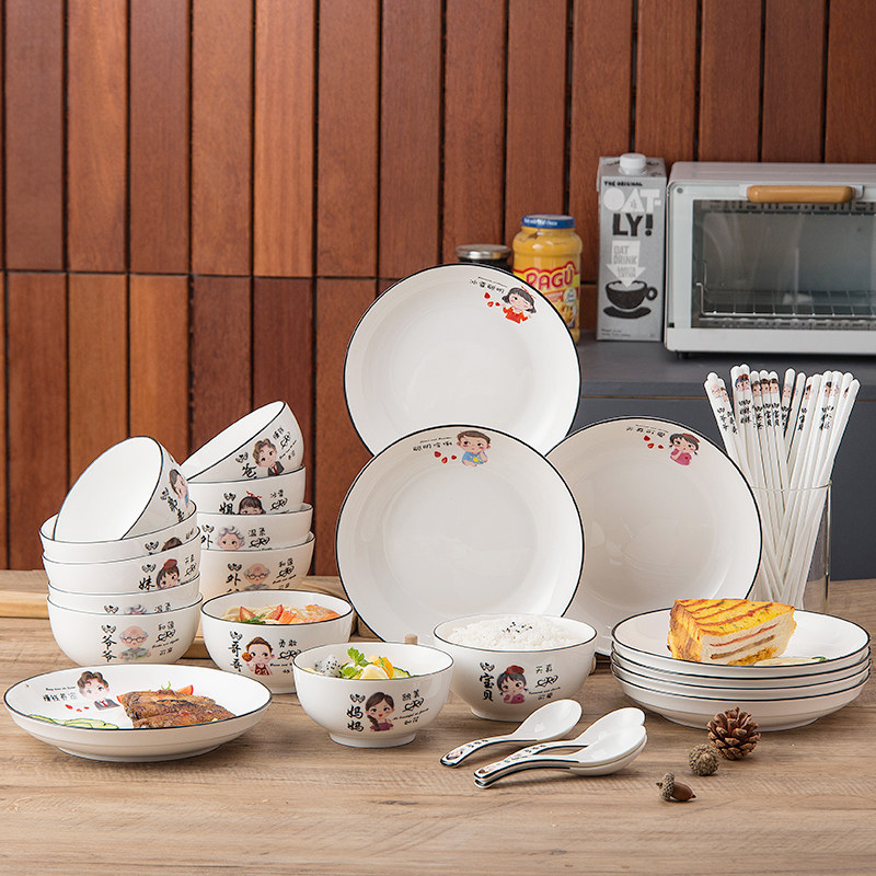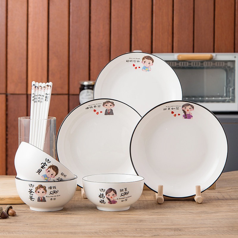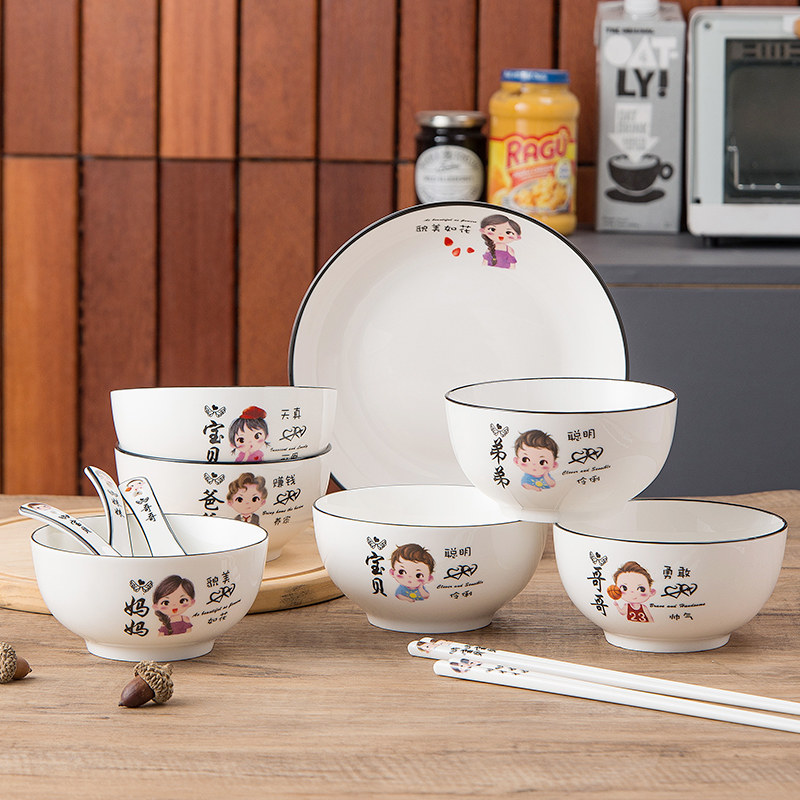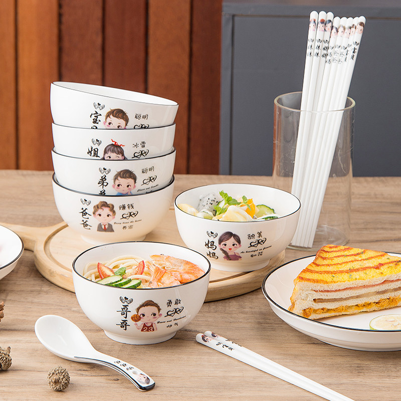 Parent-child bowl ceramic eating bowl chopsticks tableware dish set household a family of four to distinguish special personnel