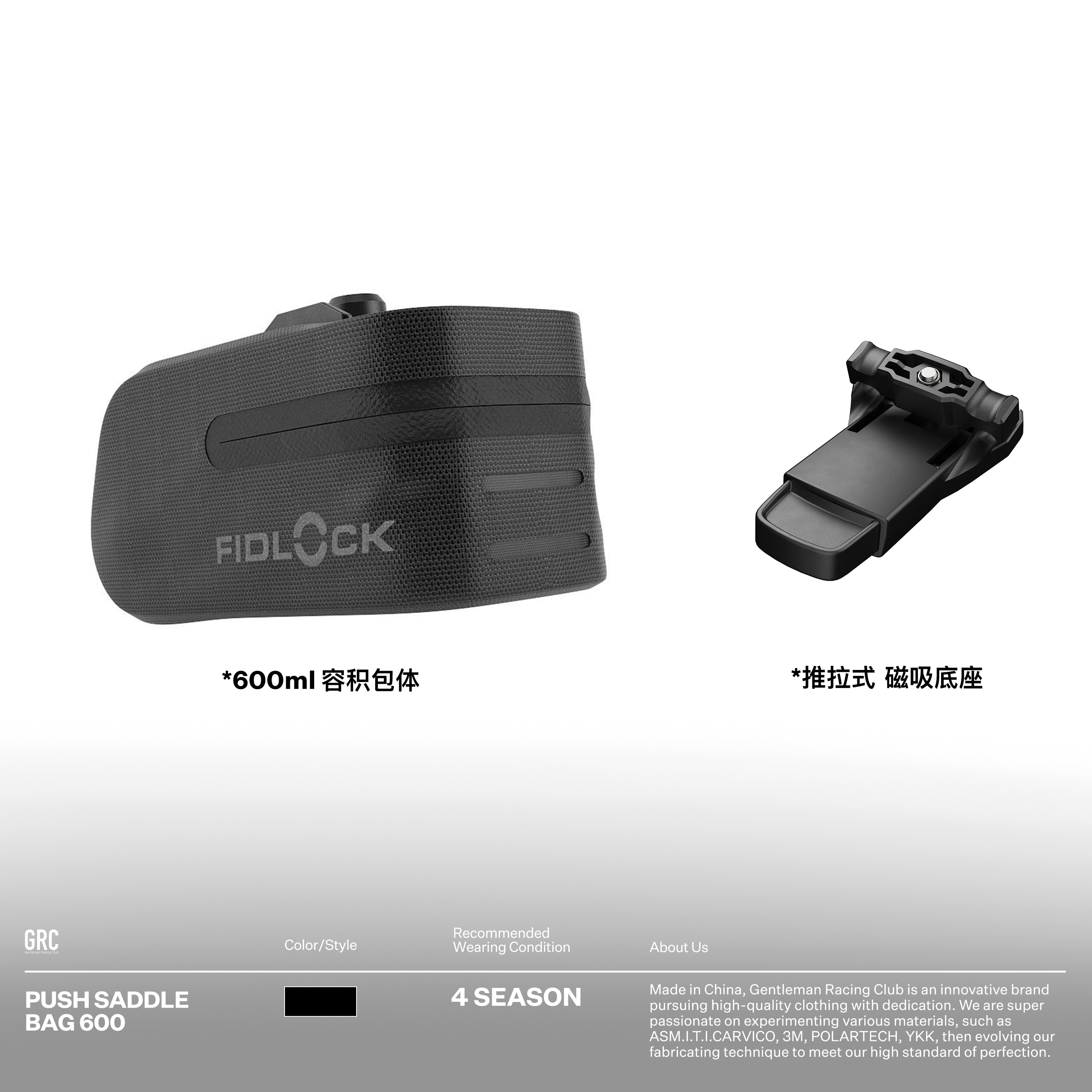 GRC rebellious bicycle pack FIDLOCK jointly magnetic suction 600ml waterproof road bicycle tail pack