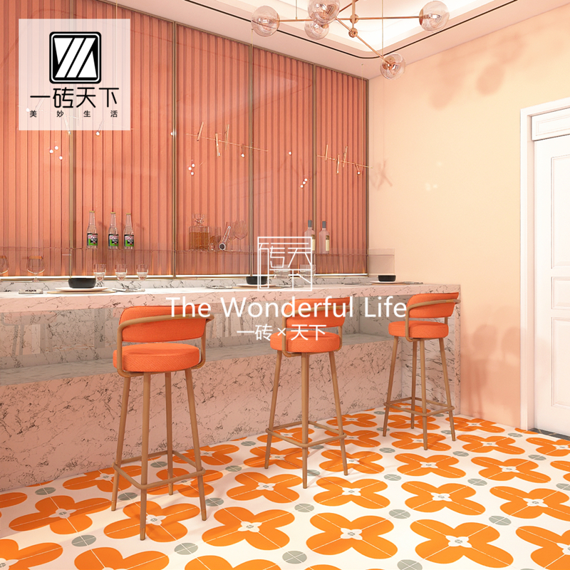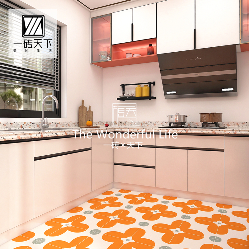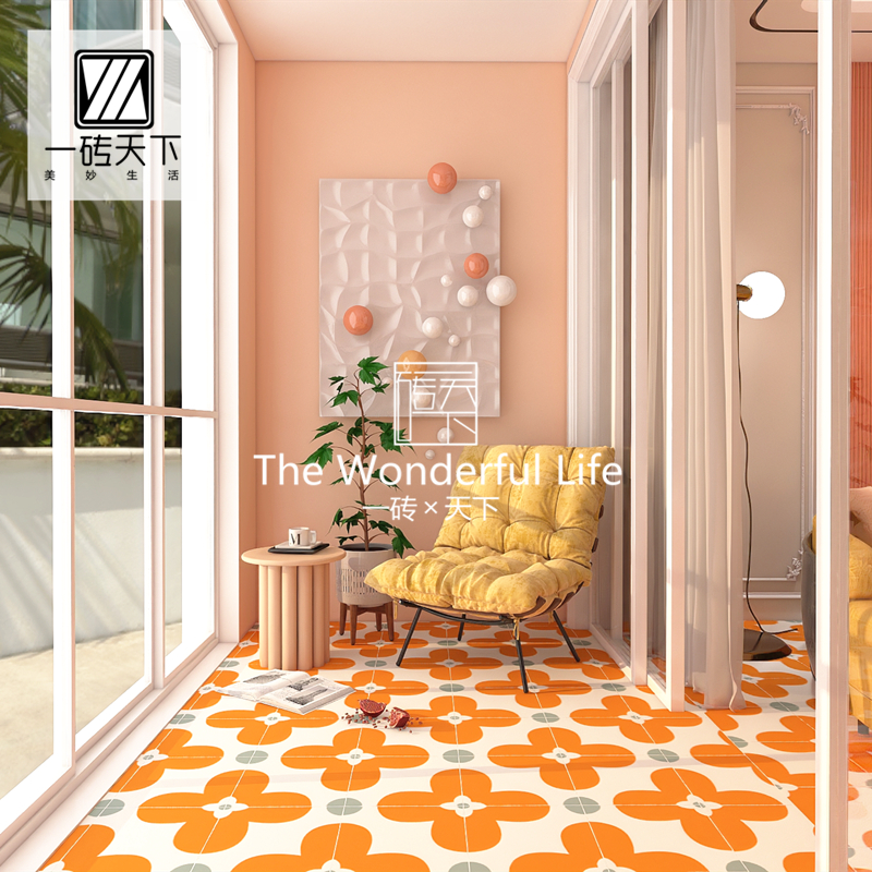 Orange Parquet Tiles Fuku Folk Sleeping Color Makeup Room Balcony Non-slip Floor Tiles Kitchen Bathroom Background Wall Flower Brick