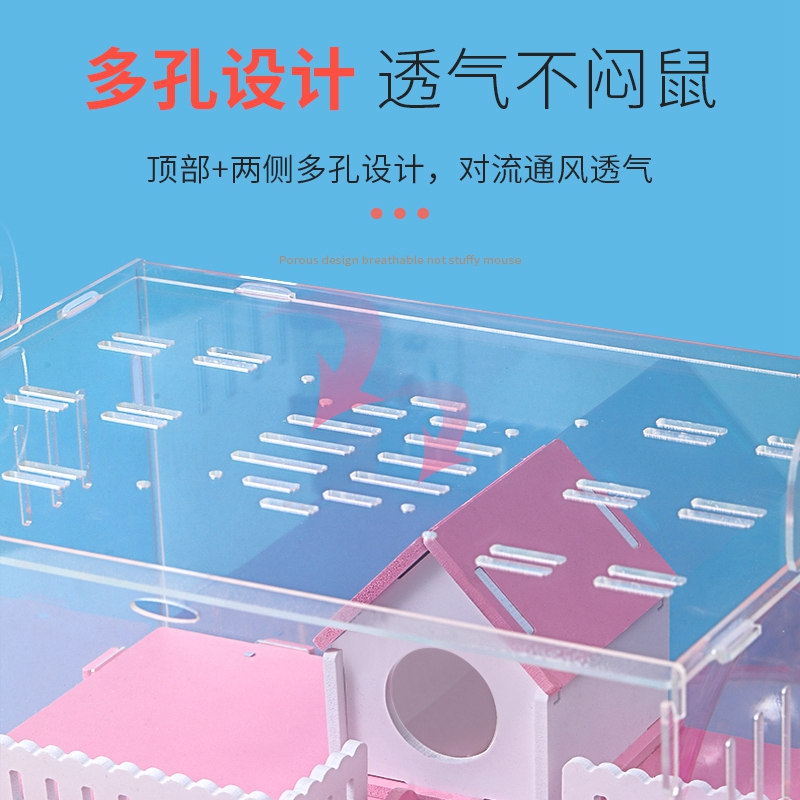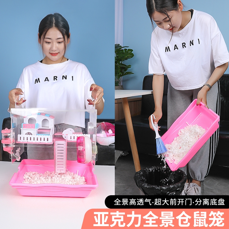 Hamster cage big number of acrylic supplies kit cheap two-story terrace oversize villa with large space depository