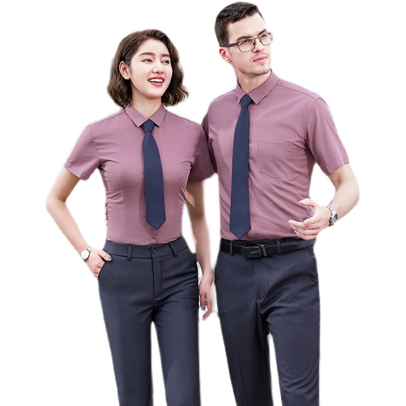 Summer career short sleeve shirt female male cohort square collar with a business positive dress working suit bamboo fiber micro-slingshot white