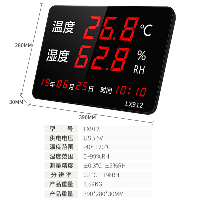 Dry-temperature meter high-precision industrial laboratory special indoor LED digital display detection meter wall-mounted LX912
