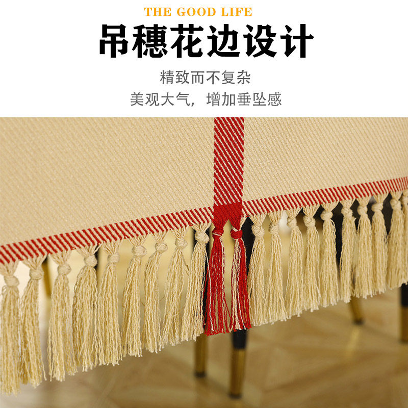 Plaid tablecloth rectangular table cloth ins Nordic light luxury American high-end tassel dresser desk coffee table