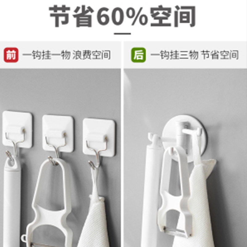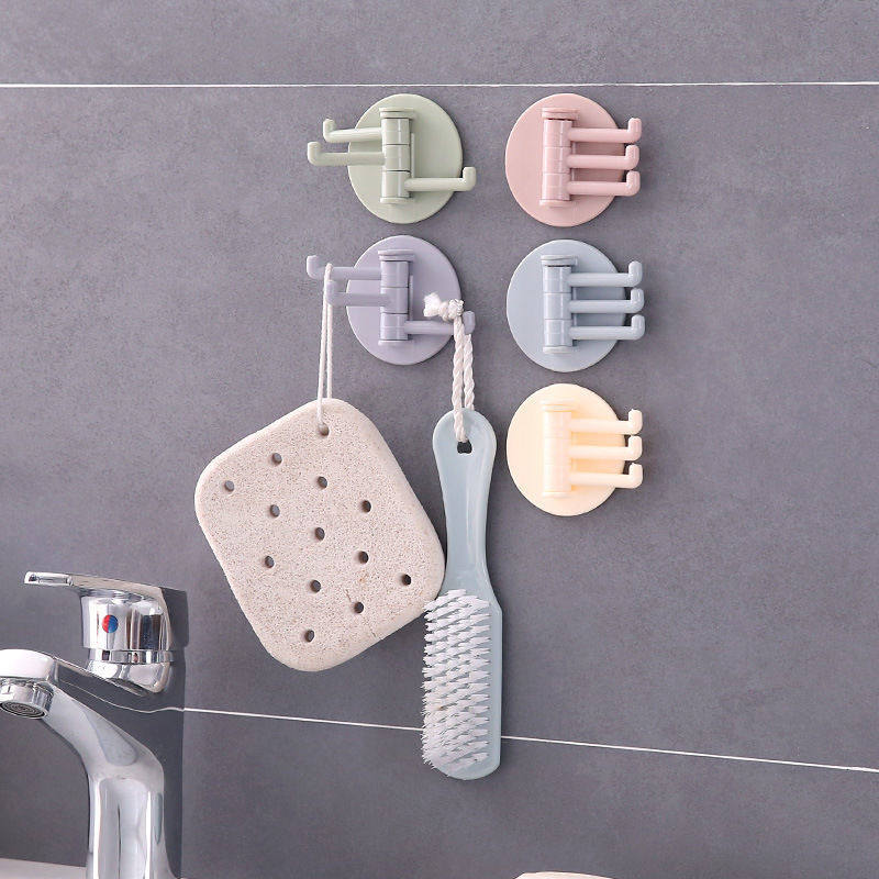 Hook rotary adhesive three-claw towel rack kitchen bathroom plastic adhesive transparent non-punching seamless hook
