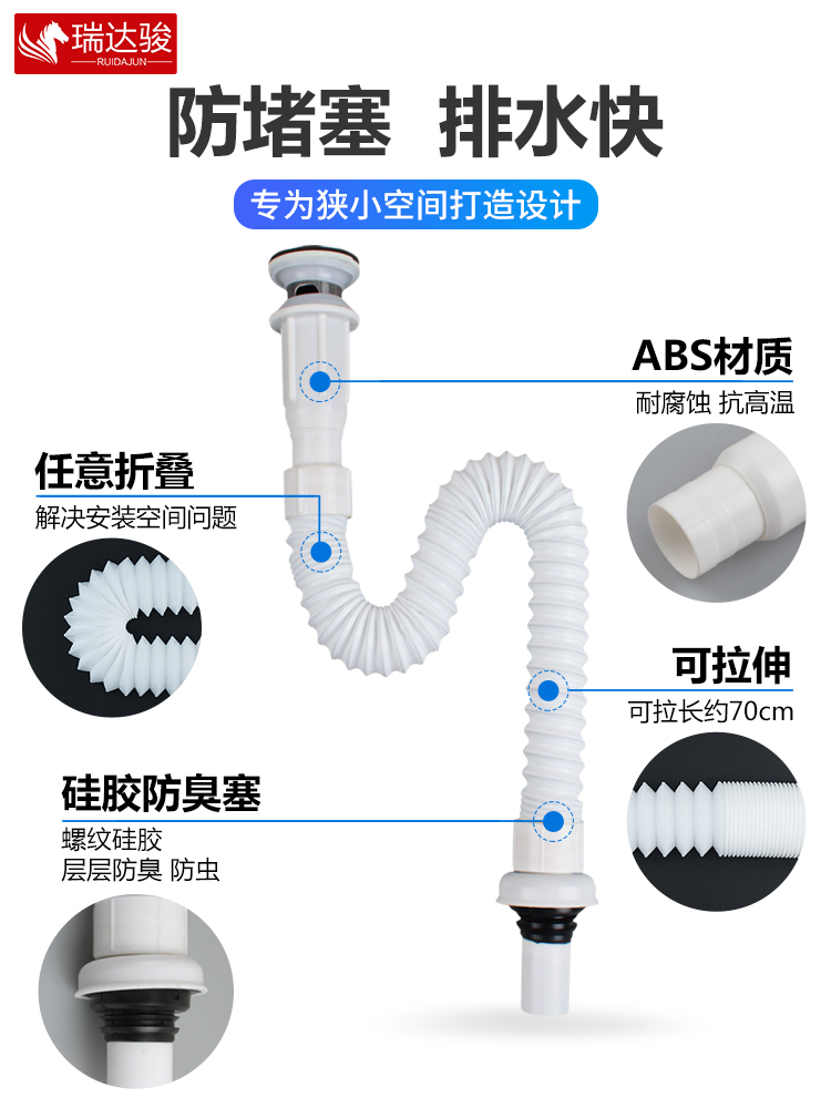 Washbasin sewer drain pipe washbasin basin drainer basin hose drain fittings leaking plug pipe