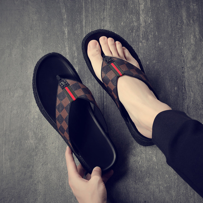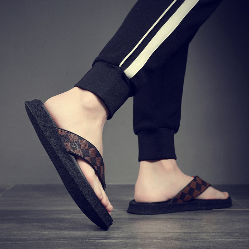 Slippers Men's Summer New Ins Outer Wear Soft Bottom Anti-Wear And Wear Casual Cool Drag Flat-bottomed Sandals Trend Herringbone Tug