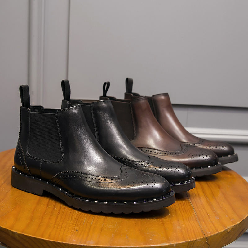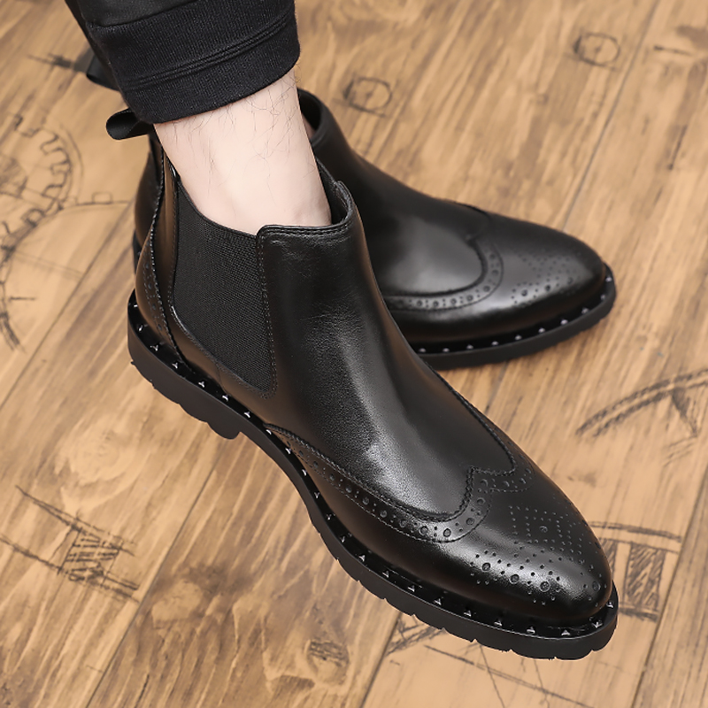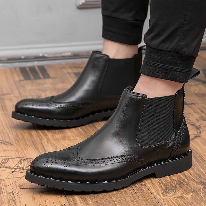 High cylinder leather shoes Men's Inn Sculpture Flower Tide Boots Sleeve Midbarrel Men's Martin Boots Genuine Leather 100 Hitch A Chelsea Boot Man