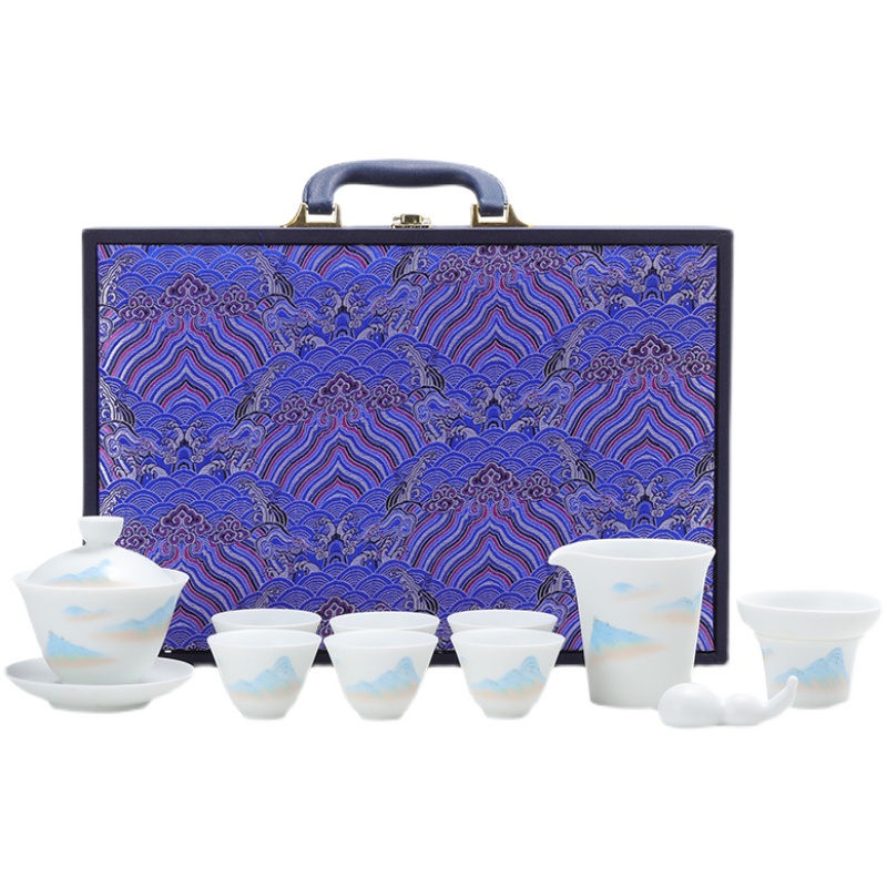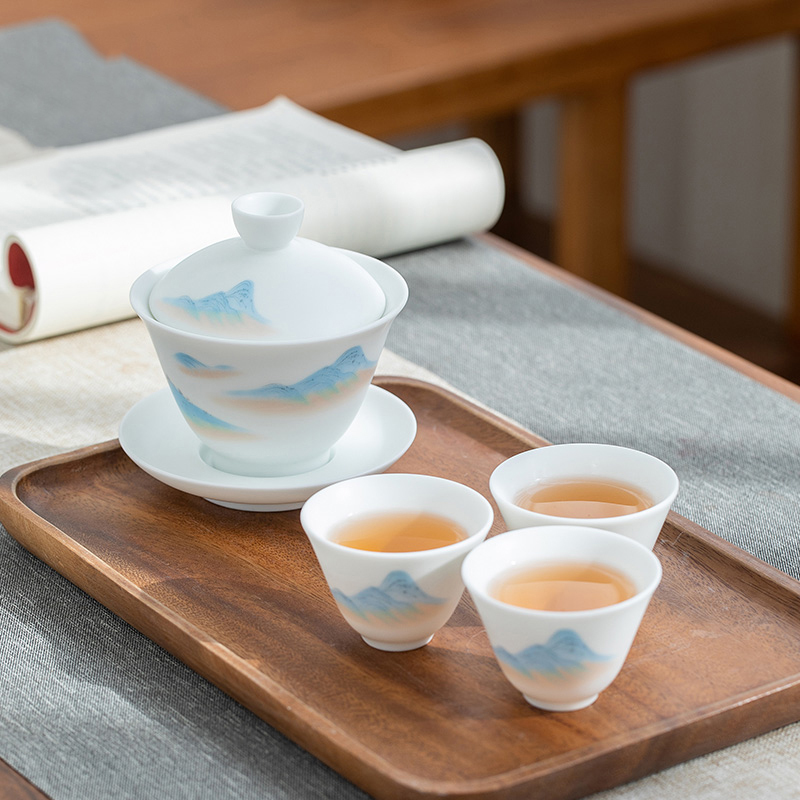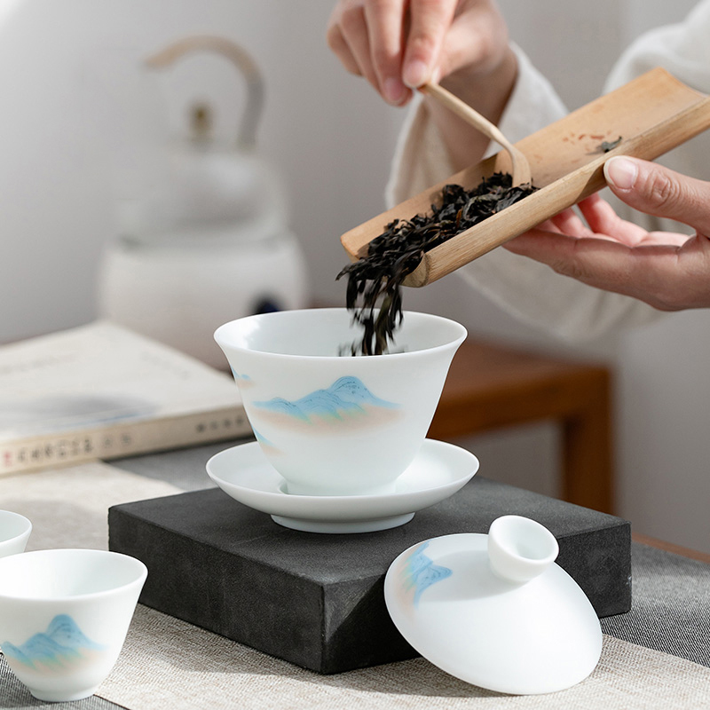 New white porcelain ceramic thin body kung fu tea set home white simple cover bowl small set modern gift making tea cup