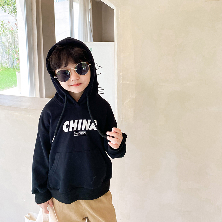 Children's letter printed Lianhood sportswear boy autumn clothing new country Chauded wind blouses baby loose leisure sports tide