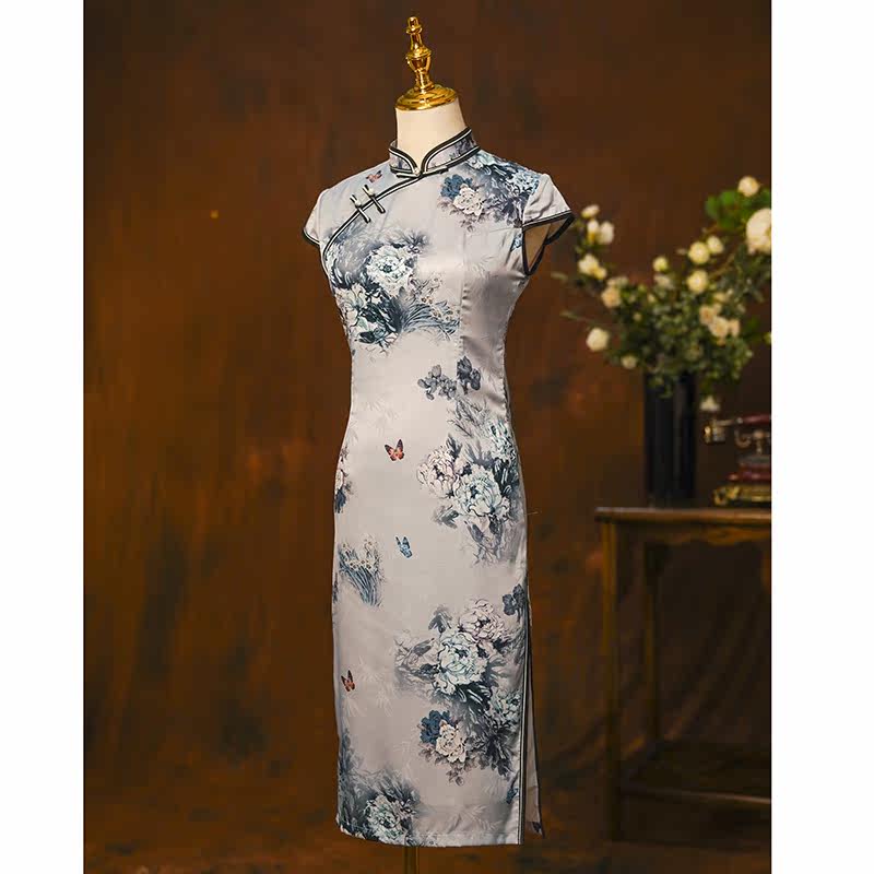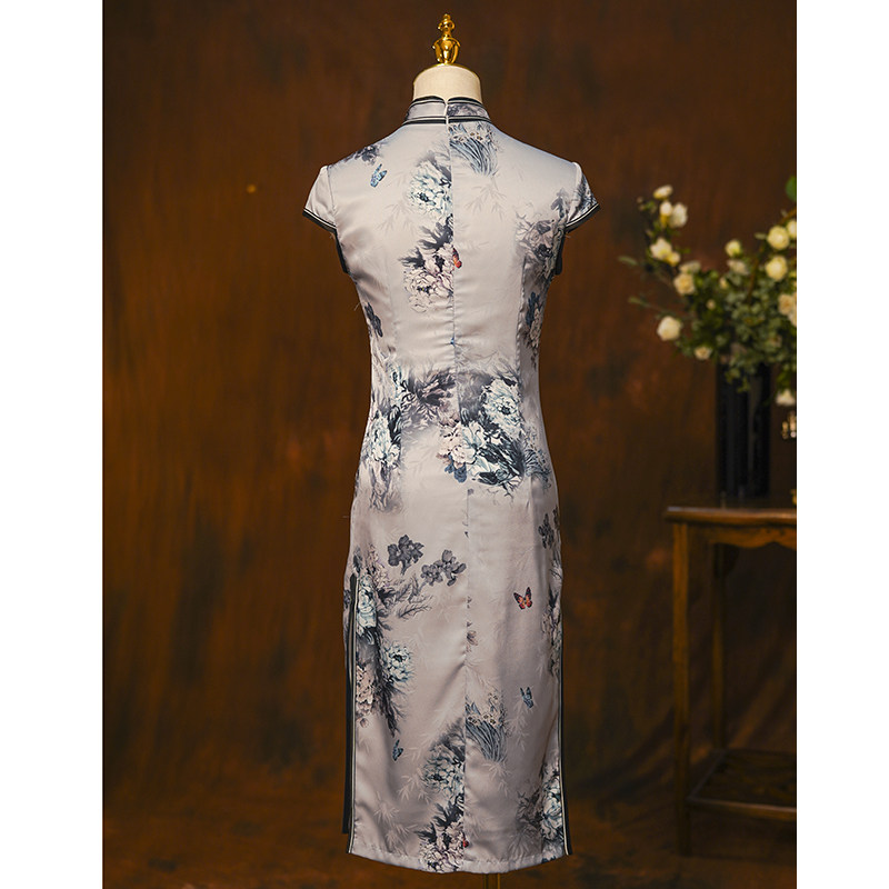 Improved printed cheongsam female retro national tide Chinese style old Shanghai mid-length daily wearable mother dress autumn