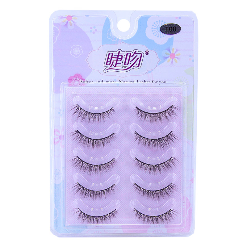 Eyelash Kiss T08 False Eyelashes Female Natural Cross Thick Eye Tail Lengthened Light European and American Black Stage Hard Stems to Support Double Eyelids