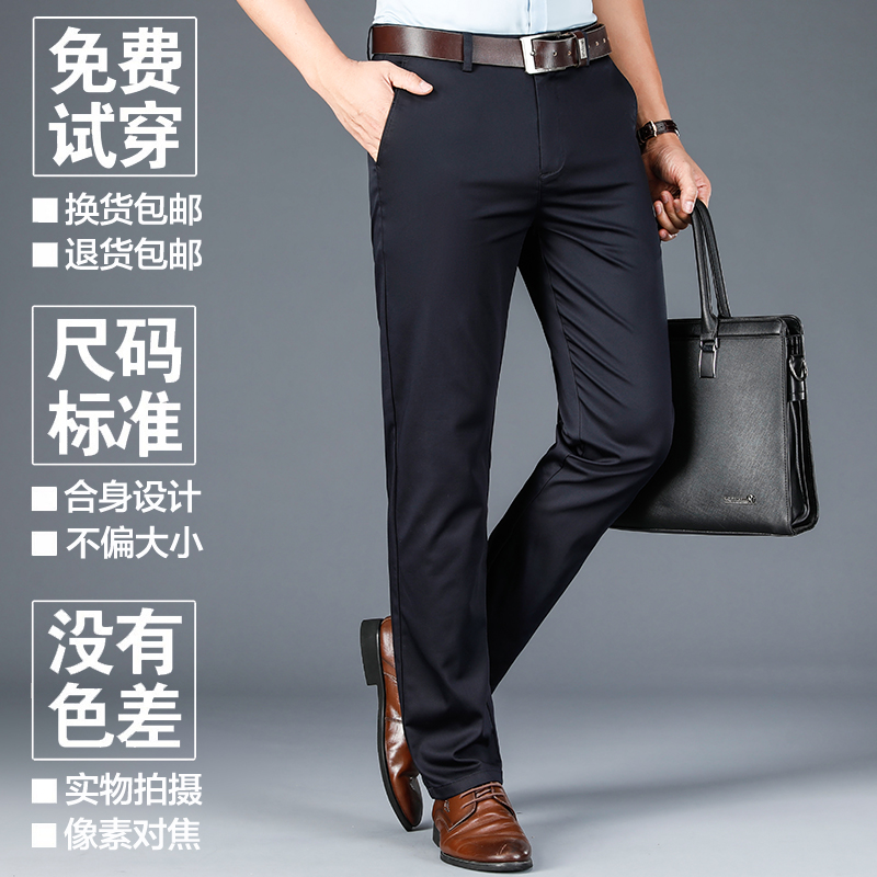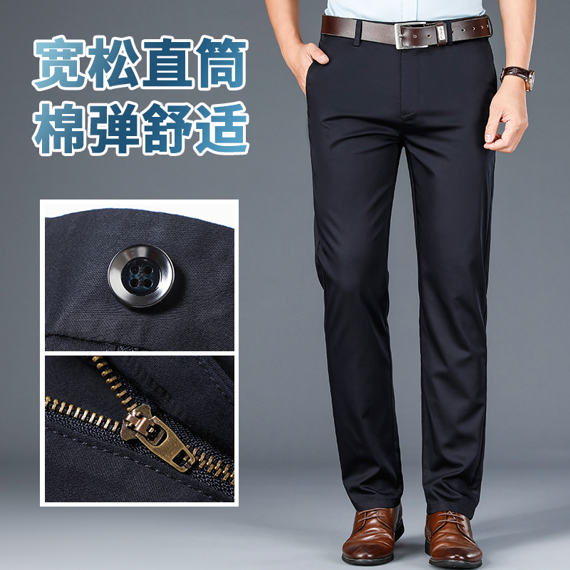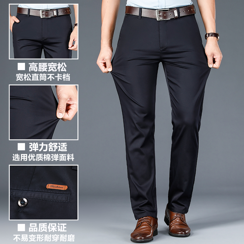 Summer Thin Men Casual Pants Loose Straight Drum Ice Silk Western Pants Men Business Black Casual Long Pants Men's Spring Autumn