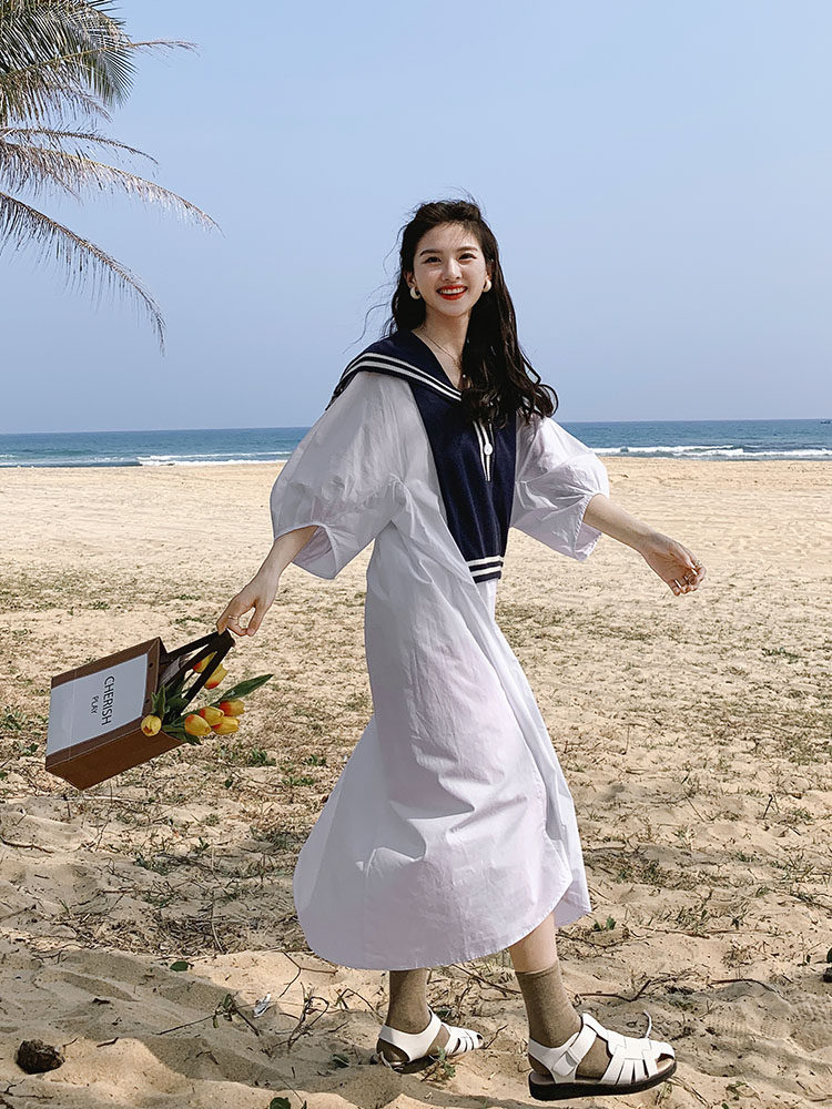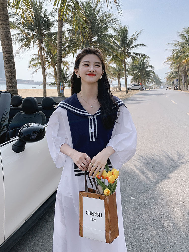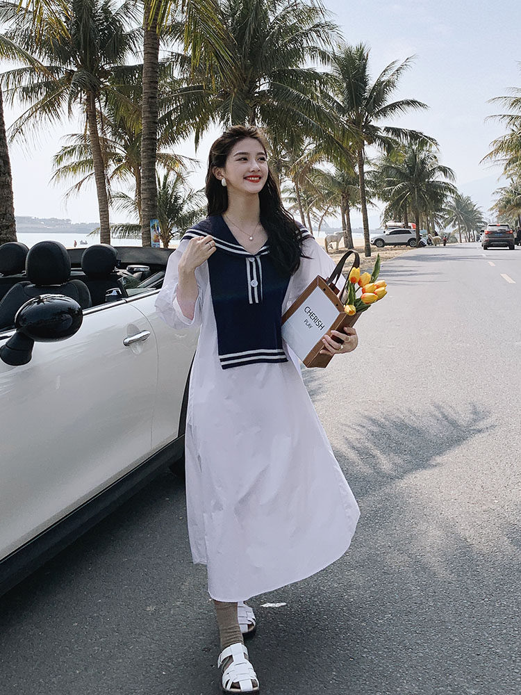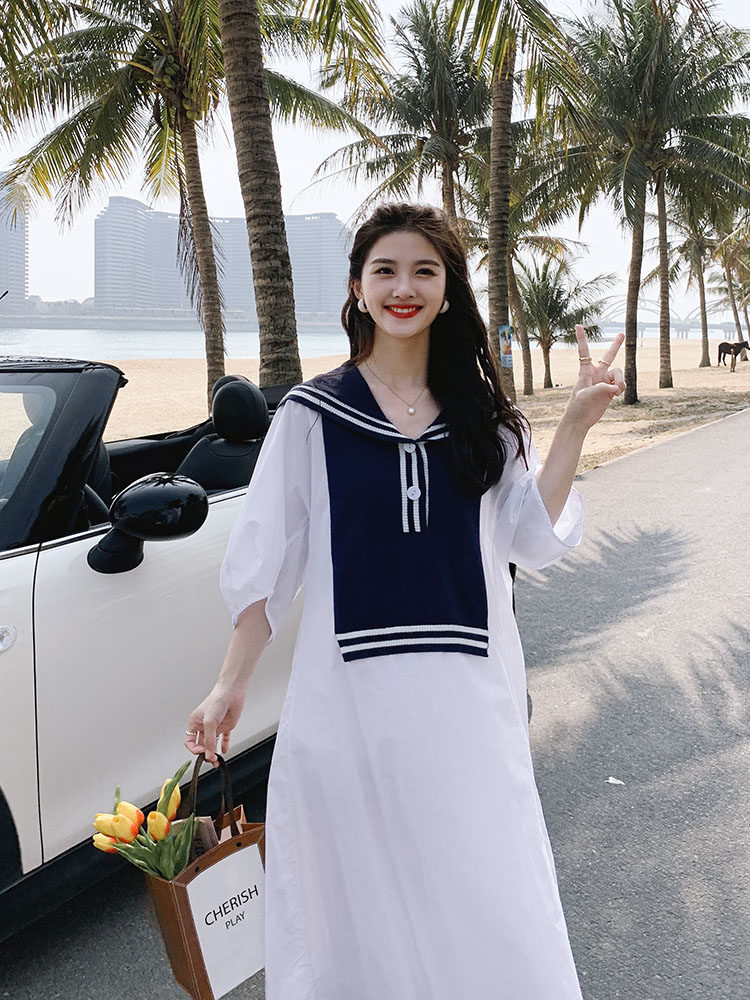Pregnant women summer dress white dress advanced feeling pregnant mother summer large size loose temperament sweet trendy mother long skirt