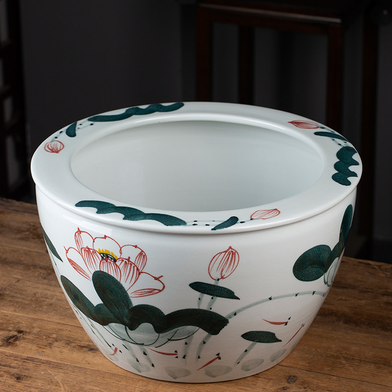 Jingdezhen Ceramic Lotus cylinder cylinder nude cylinder aquatic fish cylinder cylinder of the ancient aquatic fish cylinder