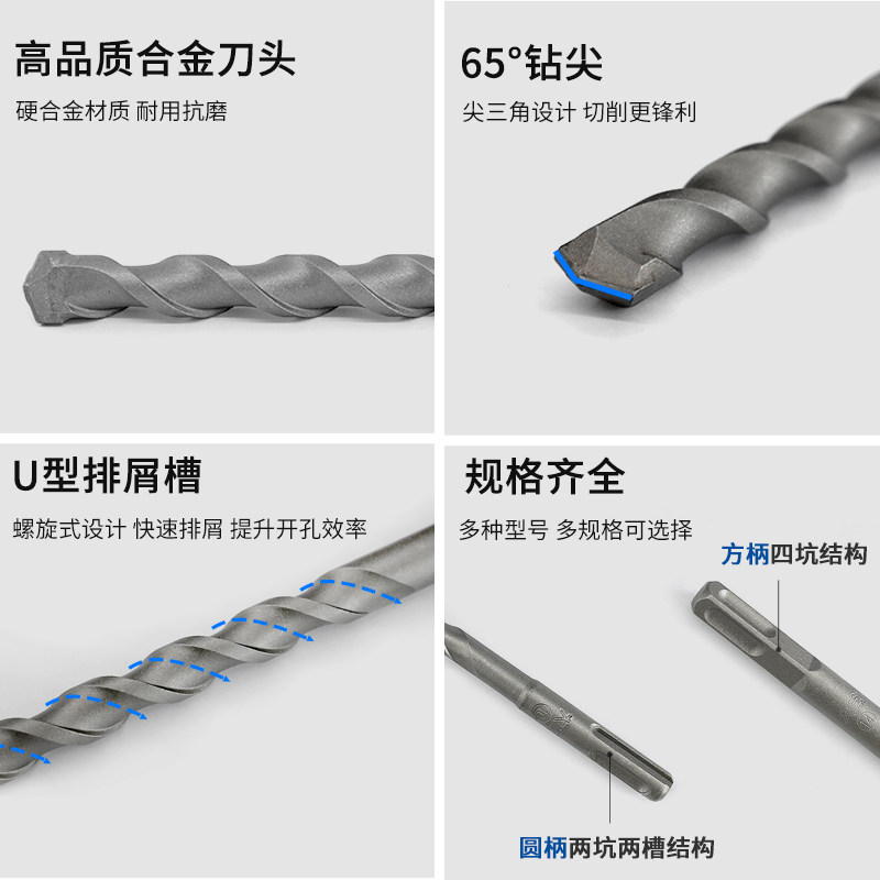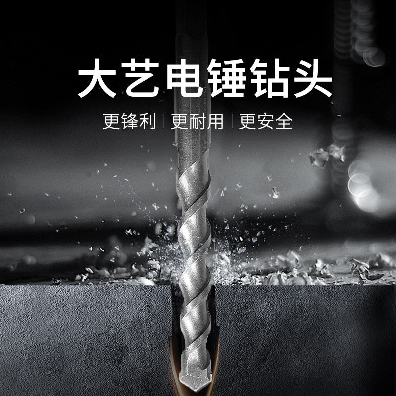 Great art shock electric hammer drill with drill bit punching concrete 6mm square handle 4 pit round head wearing wall 8mm round shank drill